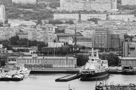 Vladivostok, Russia-August 26, 2018: Urban landscape with sea and coastline views.