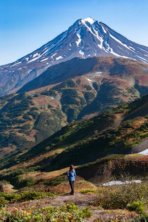 Russia, Kamchatka. Beautiful view of the Vilyuchinsky volcano in morning.
