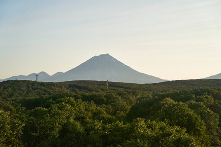 Scenic view of the Avachinsky Volcano, Kamchatka Peninsula, Russia.