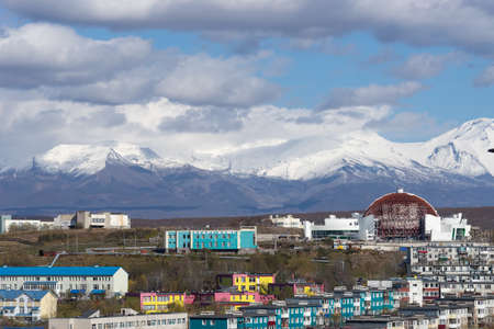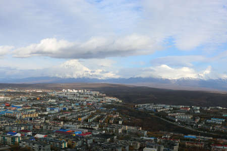Petropavlovsk-Kamchatsky, Russia-October 8, 2019: Urban landscape with a view of the volcano.