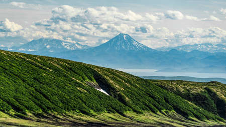 Kamchatka. Avachinsky pass view from the valley to Vilyuchinskaya hill. Summer
