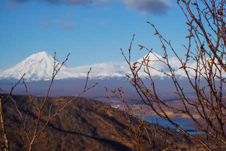 Kamchatka, Vilyuchinsky volcano on the background of Avacha Bay