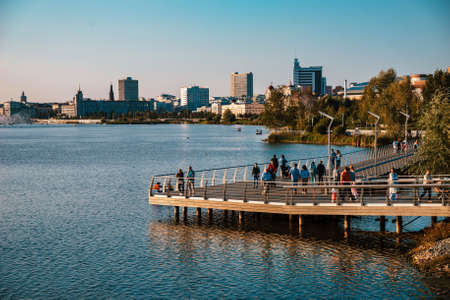 Kazan, Russia, August 30 2021. The embankment of Lake Kaban in Kazan. People on vacation.