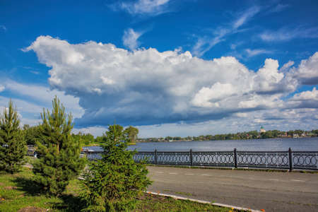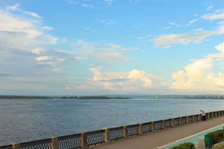 View on the Volga embankment of the Samara summer day in anticipation of storm