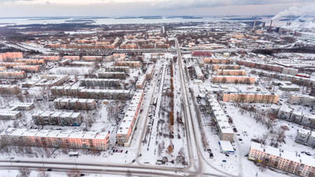 Aerial view at the provincial town in northern Karelia. Segezha is a industrial town with Pulp and Paper Mill. Russia