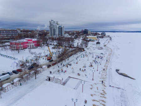 PERM, RUSSIA - March 13, 2016: City winter landscape, street Peter and Paul
