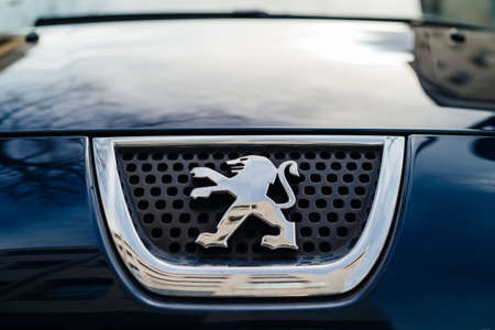 Strasbourg, France- Feb 23, 2017: Front view of Lion icon of Peugeot French car manufacturer brand
