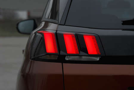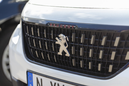 LUGO, ITALY - September 11, 2018: light enlightening Peugeot logo on a car body
