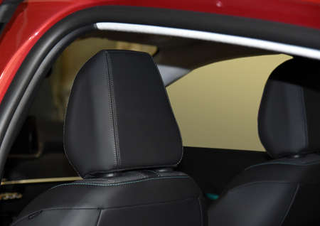Close up of modern sedan headlamp. Front view shot from side of vehicle. Car headlight background.