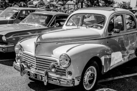 Verdun, France - June 27 2017: Peugeot 203 oldtimer, in black and white