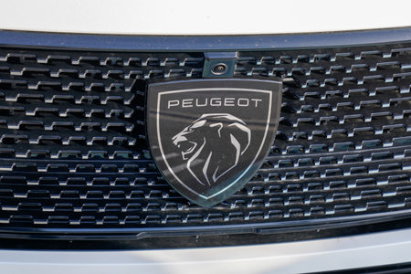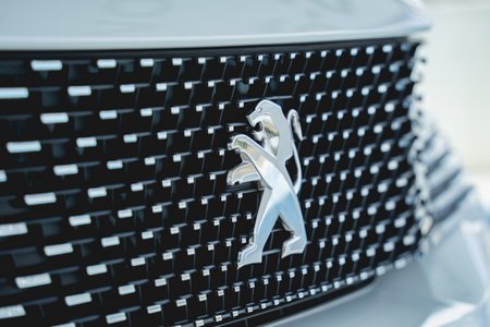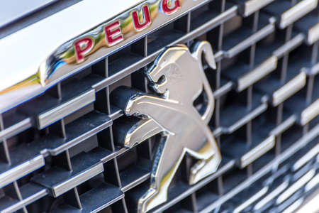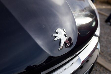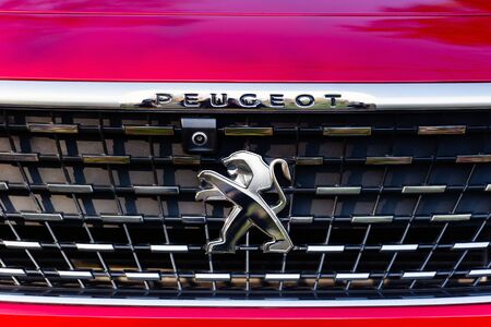 BELGRADE, SERBIA - MARCH 23, 2019: Detail of the Peugeot car at Belgrade, Serbia. Peugeot as car manufacturer was founded at 1882.