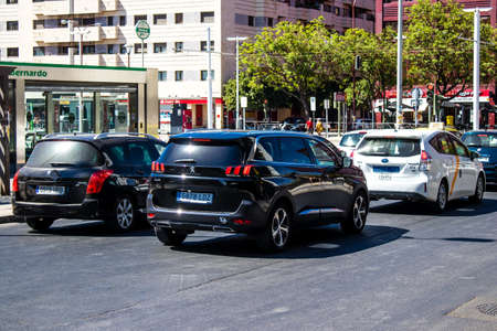 Seville Spain September 22, 2021 Traffic jam in the streets of Seville, an emblematic city and the capital of the region of Andalusia, in the south of Spain