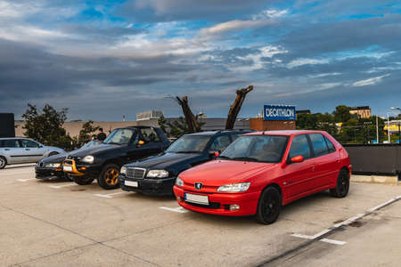 Roppenheim, France - Oct 7, 2017: Roppenheim the style outlets parking with rows of German and French cars - Peugeot SUV in the place P13
