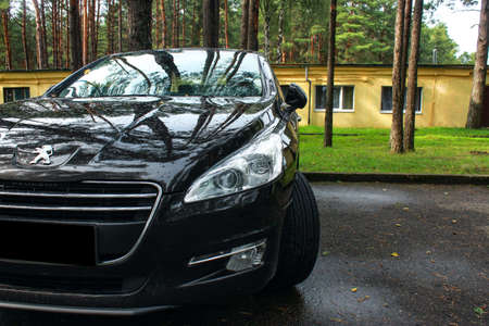 Grodno, Belarus - 06.27.2017: Peugeot 508 coming out of the trees