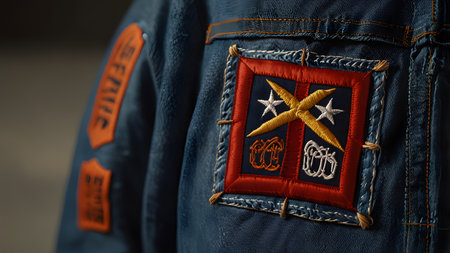 A close-up shot of a distressed American flag patch on vintage fabric, showcasing textures and colors that symbolize heritage, resilience, and identity.