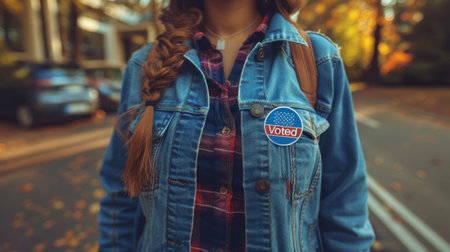 Woman wearing denim jacket with youth day text painted on back. International youth day celebration and advocacy. Casual style.