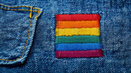 Rainbow-colored patch on blue denim fabric