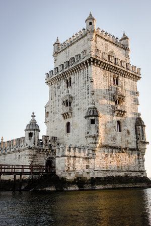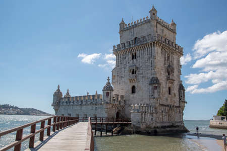 LISBON, PORTUGAL - OCTOBER 13, 2015: Belem Tower or the Tower of Saint Vincent is a fortified tower located in Lisbon, Portugal