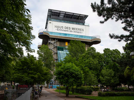 Vienna, Austria - June 25, 2020: The zoo Haus des Meeres located in an anti aircraft tower of World War II. This zoo has a focus on marine aquariums and terrariums.