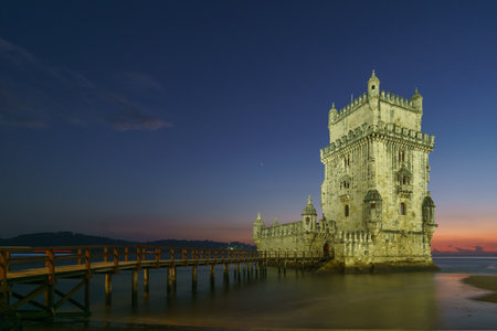 View of the historical landmark, Tower of Belem, located in Lisbon, Portugal.