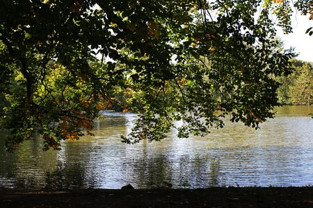 Colorful tree leaves by a lake during autumn in Poland