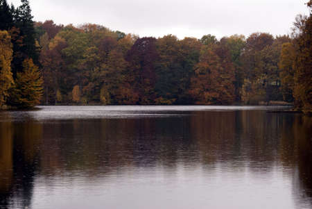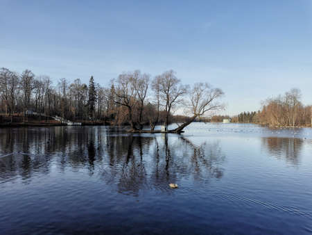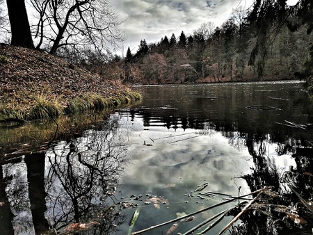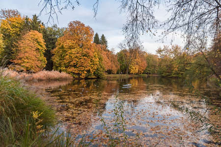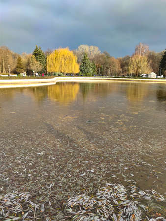 late autumn in Gatchina Park fallen leaves cold water