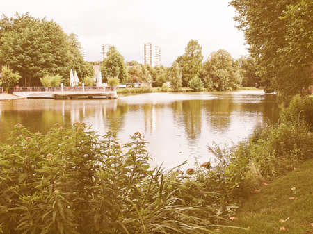 Pond in the Mittlerer Schlossgarten park in Stuttgart, Germany vintage