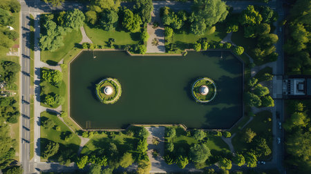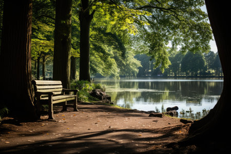 Sunny day at Vondelpark, Amsterdam, with lakes and trails., generative AI