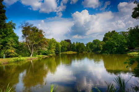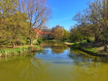 small lake in Lednice castle spring garden