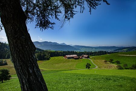 View in the Zurich Oberland of the surrounding hills in this beautiful spring season. foresight in the mountains. Swiss