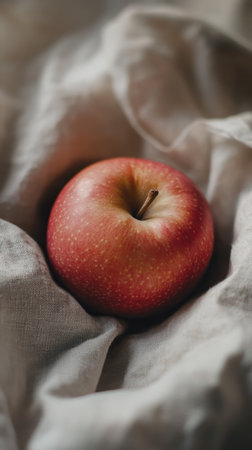 Red apple on soft fabric background
