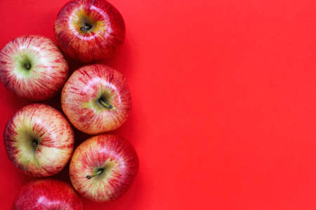 Group of red apples - top view, space for text