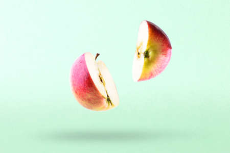 Pieces of an apple in flight. Half of apple in the air