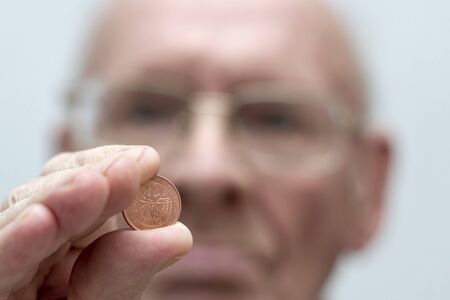 Man of euro cent. Selective focus