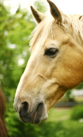 Front part of purebred racehorse muzzle with nostrils and short hair