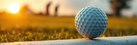 In the golden light of a new day, a golf ball rests on the brink of success.