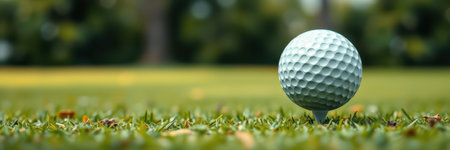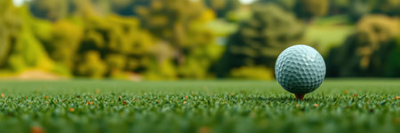 Golf ball on the tee in a beautiful green landscape. Golf banner