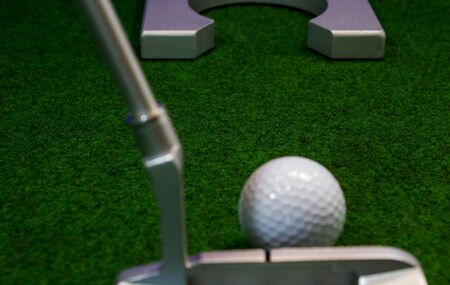 The golf ball is out of the green, which is difficult to fix. sport concept.