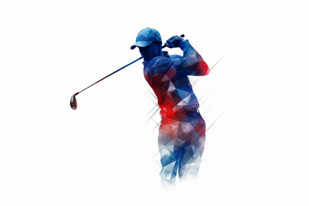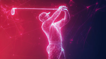 Artistic rendering of golf swing with geometric overlays and glowing swing lines