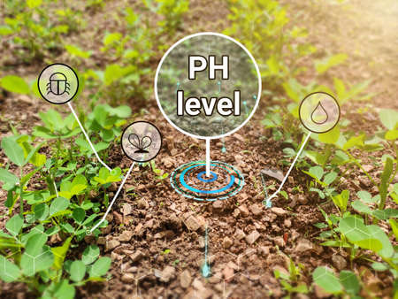 Close-up shot of a soil sample being tested with a pH indicator strip. The strip shows a range of colors, indicating the soil's acidity or alkalinity.