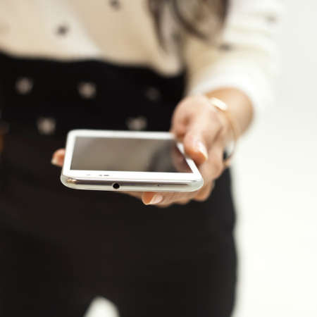 white mobile, smartphone with hand and finger