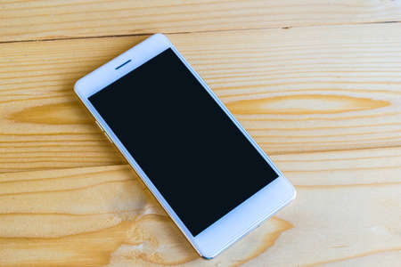 Smartphone on wooden background