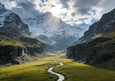 Tranquil River Flowing Through a Lush Valley cut elements, themed designs. Top