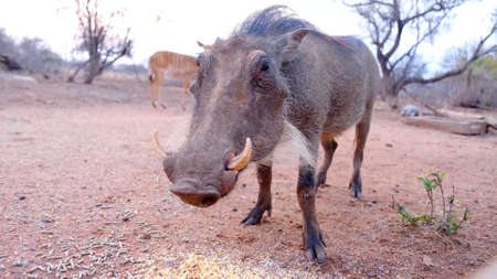 Close Up Wild Warthog Portrait South African Game Reserve Wildlife Bushveld