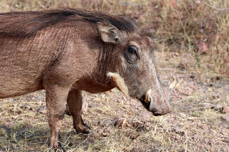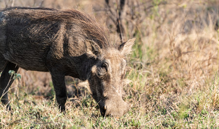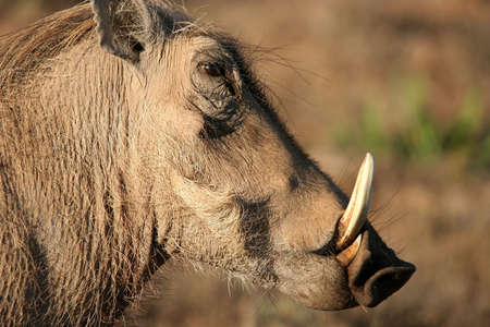 Portrait of a warthog (Phacochoerus africanus) in natural habitat, South Africa