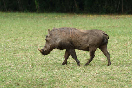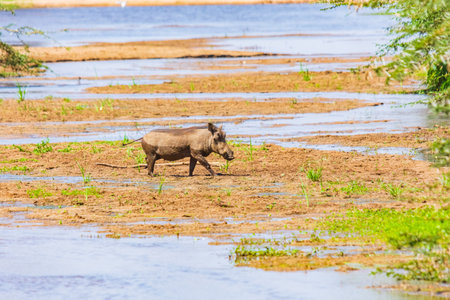 warthog walking in the savannah of the Kruger National Park of South Africa.