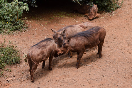 Common warthogs (Phacochoerus africanus) in Lake Manyara national park, Tanzania. Wildlife photo