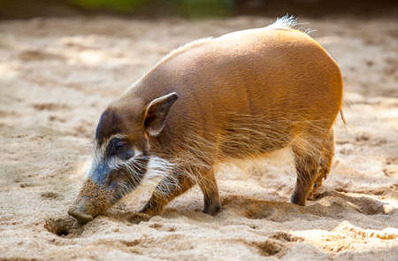 Mature specimen of red river hog or potamochoerus porcus pictus