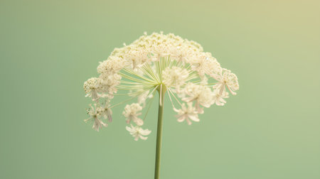 Close-up of dill flower on green background with copy space