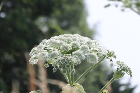 Medicinal, essential oil, honey, food plant - angelica archangelica grows in the wild.